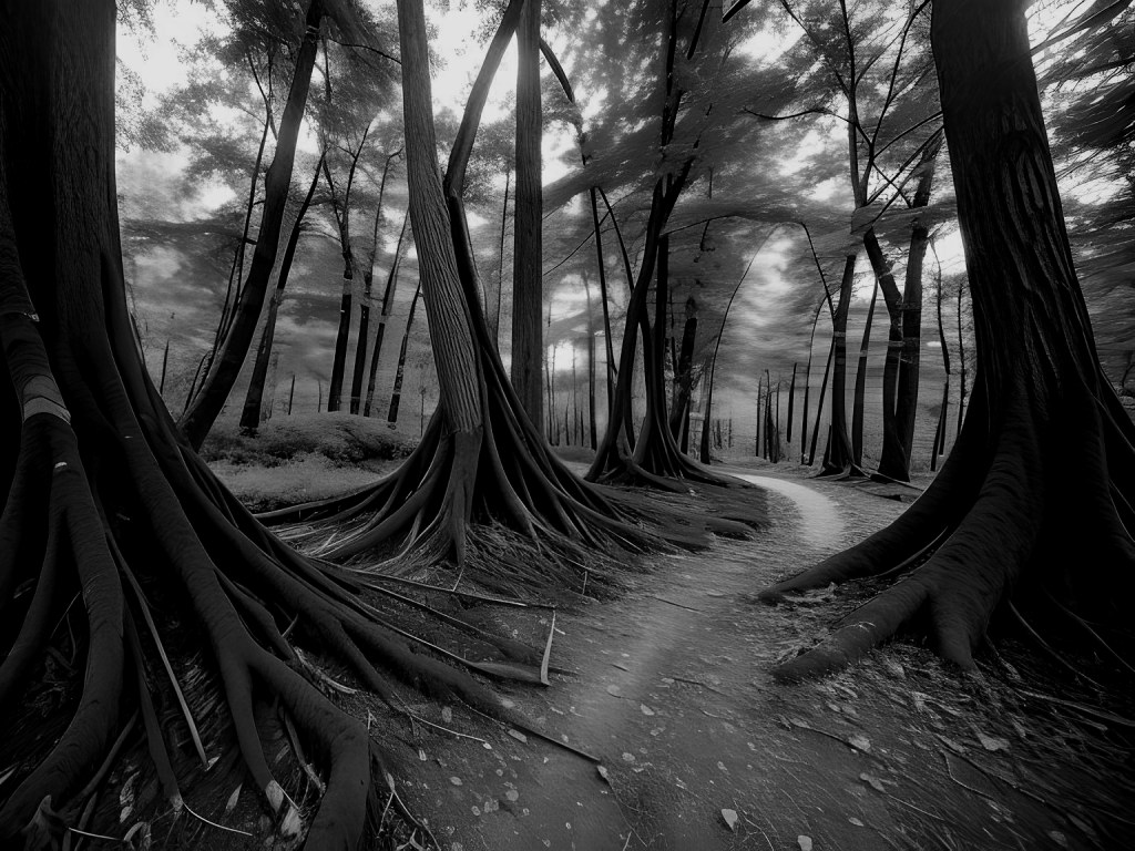 The next set I prompted for AI generation was an image I wanted to create specifically for this website. I prompted the AI generator to create an image with many tree roots. Some of the words prompted included: “multiple tree roots,” “entangled roots,” and “photographic.” I was not specific about how the artificial intelligence was to depict the tree roots and was delighted by the trail. There was a total of three images in this series. The first two images are identical with the second tweaked by yours truly and featured as the header graphic for this website.